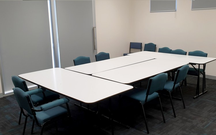 The Joe Walker Meeting Room is a carpeted room which is an ideal space for meetings, interviews, small presentations, training and smaller functions. This space is wheelchair accessible. A kitchenette is attached to the room. It can seat around 15 people.